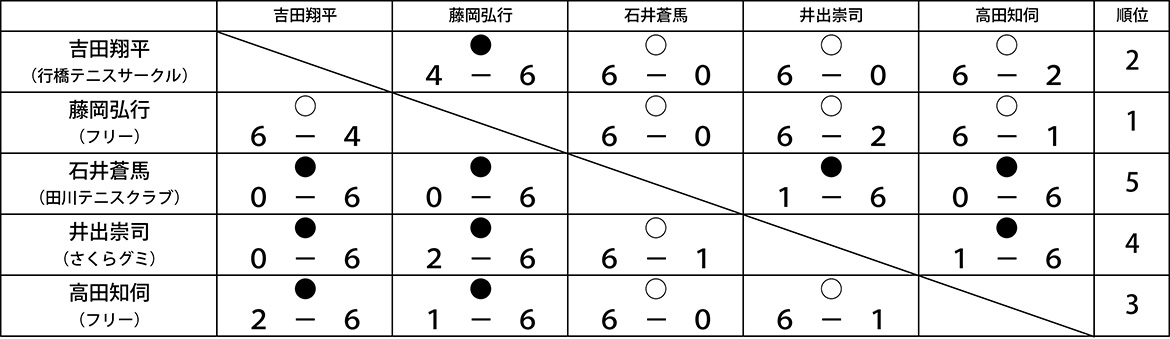 第1回 ゴールデンカップ~チーム対抗戦~ 優 勝 ランチタイム (西井・上床・角田・村山) 準優勝 キャッツ (秋葉・吉田・竹ノ脇・松山) 優 勝 ドラゴンヘッド (小庄司・角田・小庄司・藤田) 準優勝 田川テニスクラブ (守田・守田・横井・花房 […] 公開済み: 2022年3月21日更新: 2022年3月29日作成者: 田川庭球倶楽部カテゴリー: 大会結果